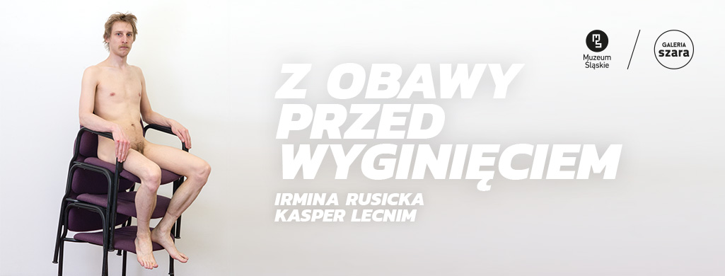 Punktem wyjścia wystawy „Z obawy przed wyginięciem”, przygotowanej przez Irminę Rusicką i Kaspra Lecnima, jest gra w cykora (the game of chicken), która w specyficzny sposób modeluje rzeczywistość, zakładając że najskuteczniejsza jest „strategia szaleńca”. Pokonanie przeciwnika polega na przekonaniu go, że myśli się nieracjonalnie i zamierza działać do końca bez względu na okoliczności. Rusicka i Lecnim analizują potrzebę rywalizacji, posiadania władzy, poniżenia przeciwnika i zdobycia szacunku realizowaną za pomocą pokazu siły, który często opiera się na irracjonalnych zachowaniach potencjalnych macho-zwycięzców. Zadają również pytanie o to, czy właśnie tytułowa obawa przed wyginięciem nie jest obecnie jednym z najsilniejszych powodów maczystowskich zachowań zarówno w życiu codziennym, jak i politycznym.